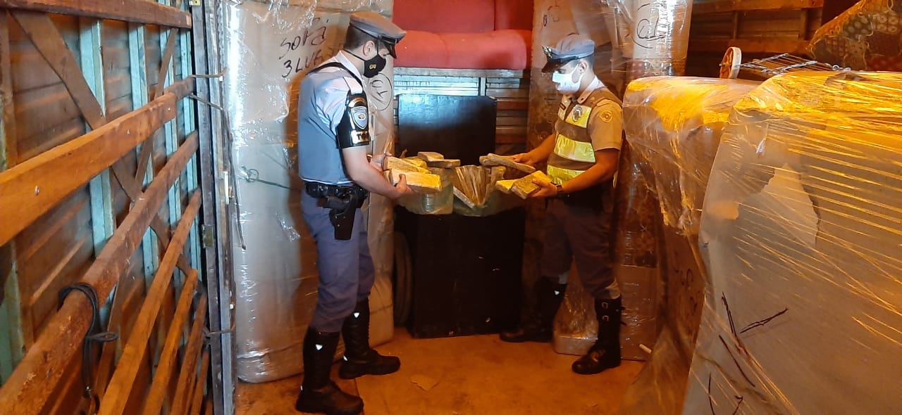 No compartimento de carga os PMs localizaram 391 tijolos de maconha, pesando 223,7 quilos. Questionado o suspeito alegou que estaria transportando a droga da cidade de Maringá (PR) para Jales (SP) e que receberia valor em dinheiro pela ação.