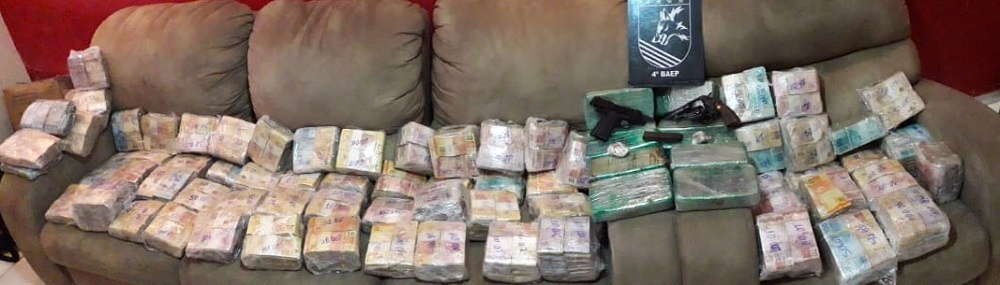 Na residência, foram encontrados mais 10 tijolos do mesmo entorpecente, um revólver calibre .38 e uma pistola calibre.380, além de R$ 1,7 milhão em espécie. Toda a substância, as armas, o dinheiro e os veículos, além dos documentos falsos e da motocicleta, foram apreendidos.