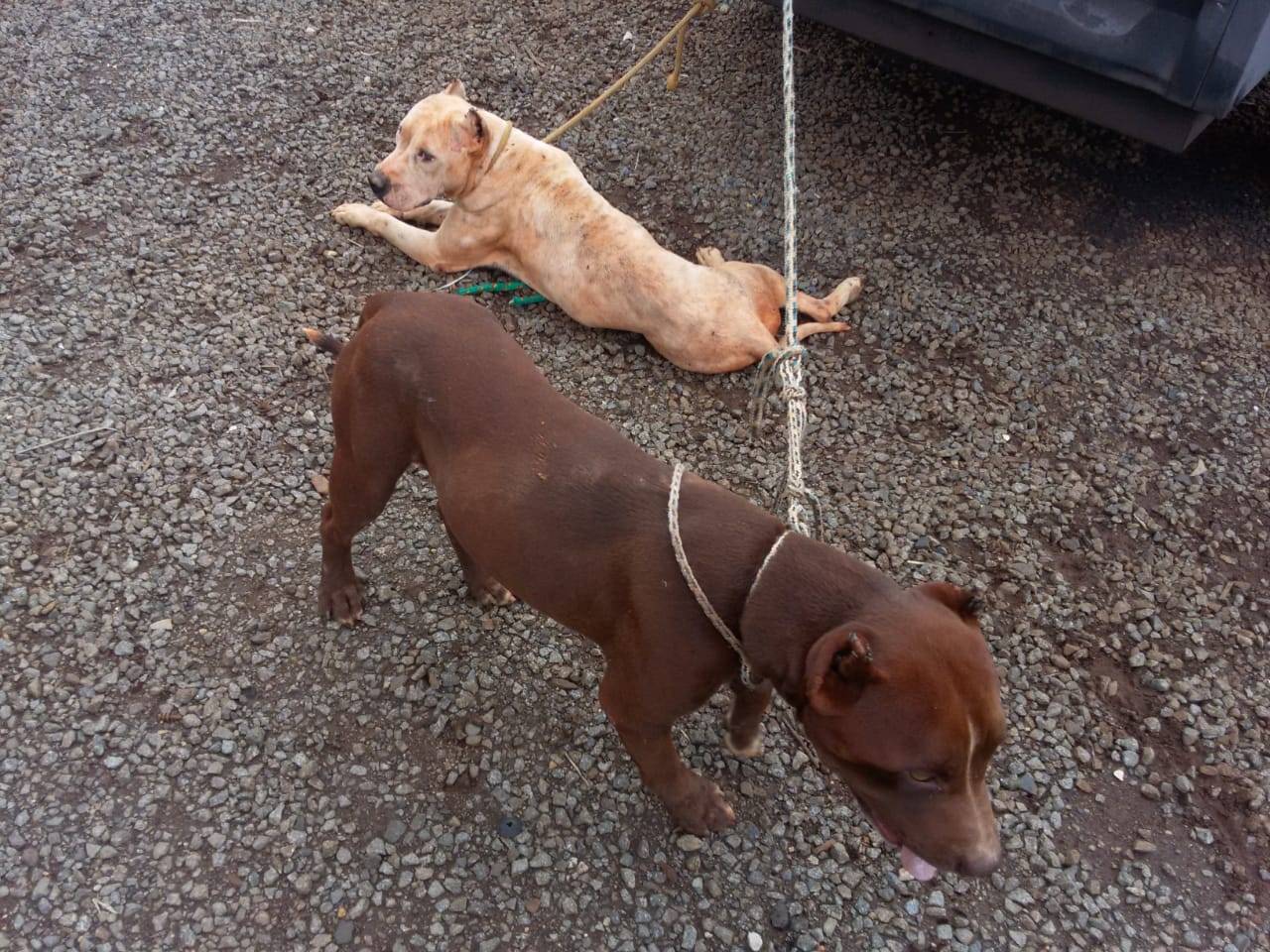 Foi feita diligência até a casa de onde eles escaparam e lá havia mais três cachorros, sendo mais dois da raça Pit Bull e um mestiço Pit Bull, nas mesmas condições dos dois que fugiram.