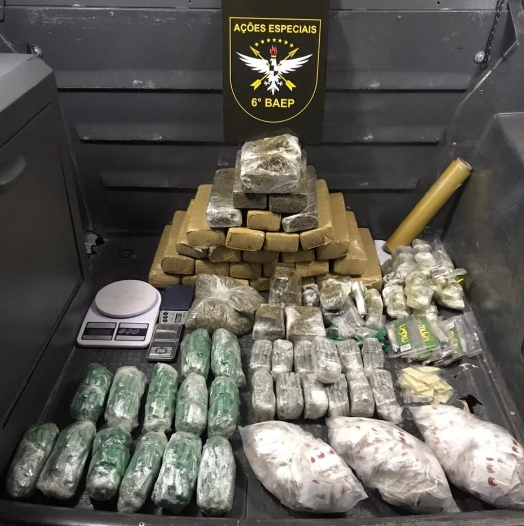 Foram apreendidos 24.840kg de maconha e 0.935g de cocaína.