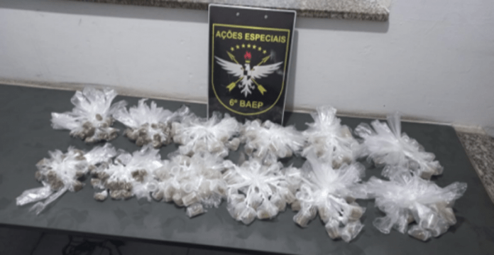 Ao notar a presença policial, o motorista esboçou nervosismo e inquietude, motivando a abordagem. Na busca veicular foi encontrado no assoalho traseiro do banco do motorista uma sacola contendo: 198 porções de maconha, 100 de skunk prontos para venda.
