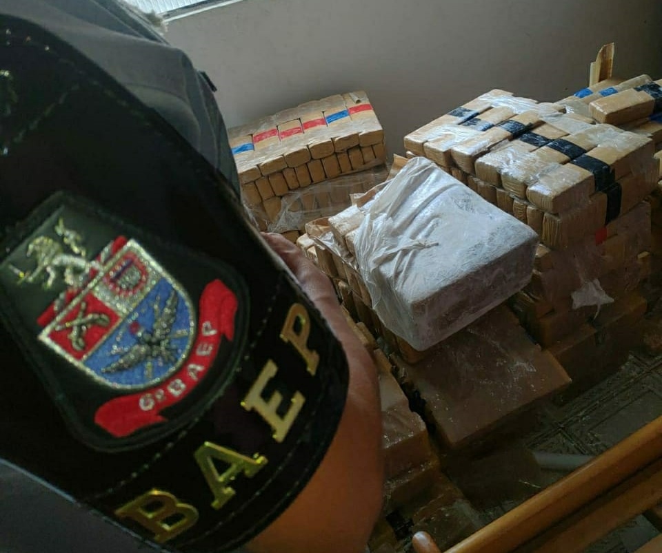 Durante patrulhamento policiais receberam uma denúncia anônima sobre armazenamento de entorpecentes de dentro de uma residência e desencadearam uma operação com demais equipes do BAEP para averiguação da denúncia. No local indicado uma residência localizada na Rua 27 de Agosto, os policiais detiveram dois criminosos, e apreenderam uma arma de fogo, dois aparelhos celulares e o total de 701,400kg de maconha apreendido após perícia.