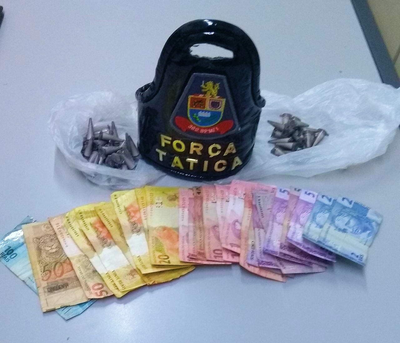 Ao ser indagado, indicou aos PMs onde estava guardada o restante da droga, sendo localizado com o apoio dos policiais militares cabo Barros e soldado Carlos, mais 30 pinos de cocaína. Diante dos fatos o criminoso recebeu voz de prisão em flagrante, foi apresentado no plantão da Central de Polícia Judiciária, onde após ser ouvido pela autoridade presente, permaneceu à disposição da Justiça.