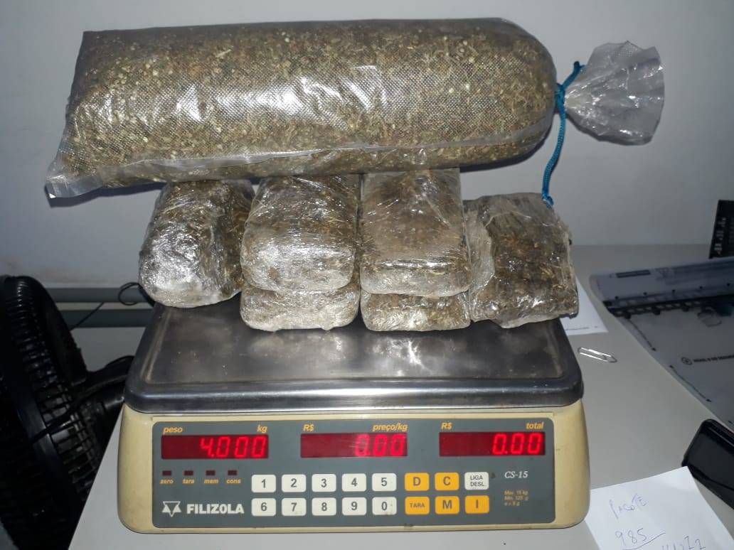 No momento nada localizado, dando prosseguimento os policiais foram até sua residência onde seu genitor franqueou a entrada da equipe e acompanhou as buscas, sendo localizadas em baixo da cama, folhas com contabilidade do tráfico, R$3.930,00 em espécie proveniente do mesmo crime e ao verificar um veículo VW/Fox que estava no quintal foi localizada no porta malas, uma bolsa contendo 6 tijolos de maconha que pesaram 3,020 KG. Foi localizado também 1 invólucro contendo 0,985 KG de maconha a granel, que totalizou 4,005 Kg de maconha.