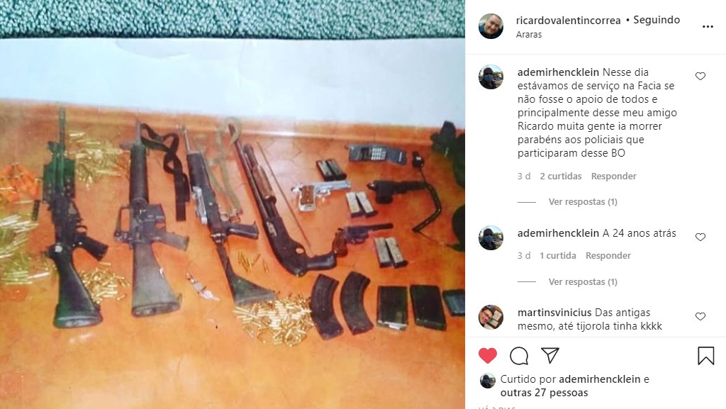 Essa quadrilha era formada por integrantes da família Oliveira, que dois anos após esse fato, em 1.998, sequestraram o irmão do Zezé Di Camargo e Luciano, em Goiânia (GO). O que espantou os policiais e os profissionais da imprensa que estiveram fazendo a cobertura do fato, foi o poderio bélico dos marginais, lembrando que apreensão desse tipo de armamento naquela época (1996), era incomum. Na foto abaixo vemos, da esquerda para a direita, um fuzil Fal, CAL 762, um fuzil colt M16, CAL 556, um fuzil mini Ruger, CAL 556, uma escopeta pump action, CAL 12, duas pistolas CAL 9 mm,um revólver CAL 38, varios carregadores das armas, além de farta munição.