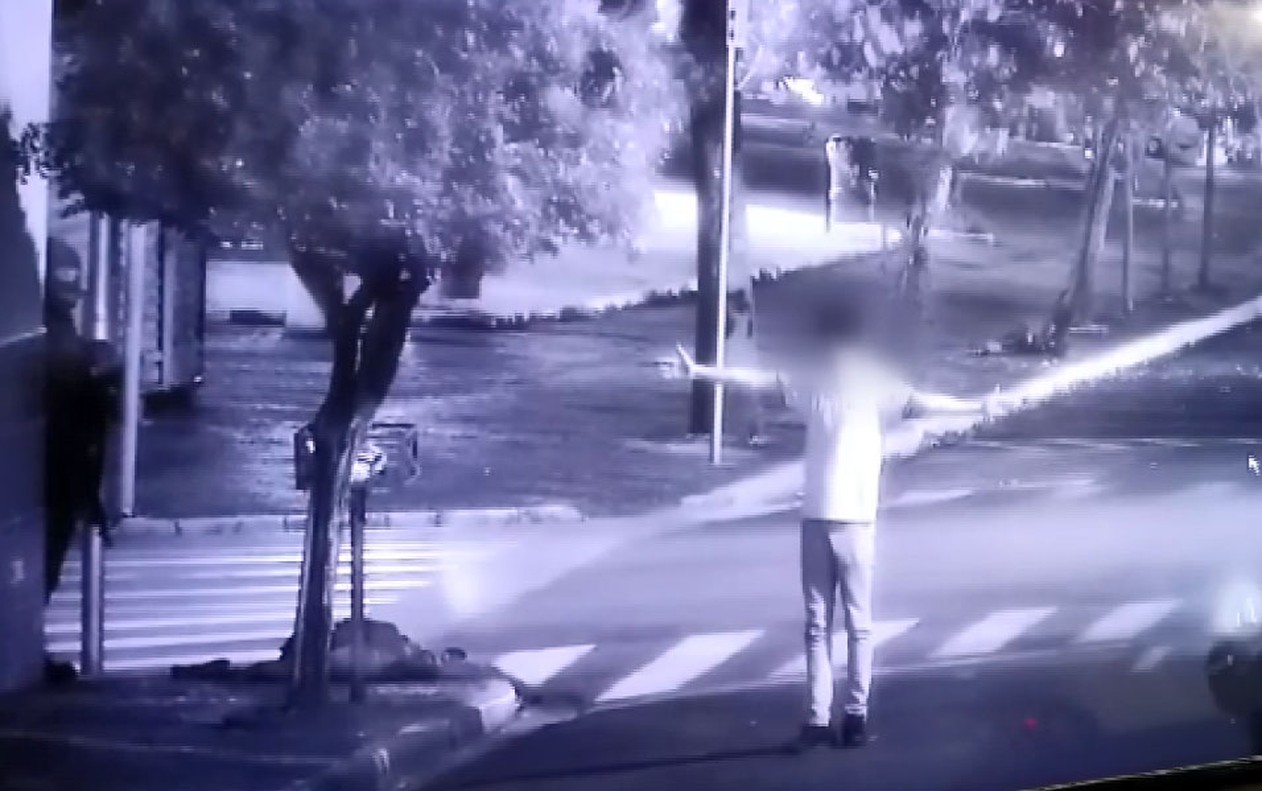 Imagens mostram um vigilante que foi obrigado a ficar de braços abertos no meio da rua, usado como “escudo” para evitar a aproximação da polícia.