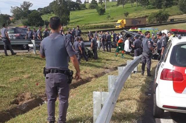 Uma viatura do Batalhão de Ações Especiais de Polícia (Baep) de Campinas (SP) sofreu acidente na tarde desta sexta-feira (20) na ligação das Rodovia Magalhães Teixeira (SP-083) com a Rodovia Dom Pedro I (SP-065), sentido Jacareí (SP). De acordo com a Polícia Militar, três policiais foram socorridos em estado grave e o cabo Góes que fazia parte da equipe faleceu.