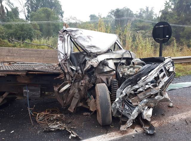 O condutor da F-4000 teve escoreações leves, mas o veículo ficou destruído com a colisão. Há interdição parcial no km 173.
