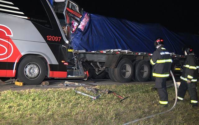 Segundo a Polícia Rodoviária, o condutor do coletivo de 49 anos ficou preso nas ferragens e morreu no local. Os passageiros não tinham como sair pela parte da frente e os bombeiros usaram uma escada para resgatar as vítimas.