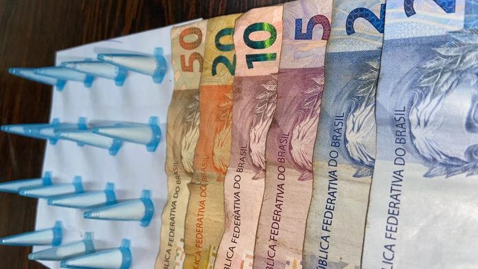 Em suas mãos os policiais encontraram 15 pinos de cocaína e no bolsa de sua calça a importância de R$ 98,00 reais em espécie.