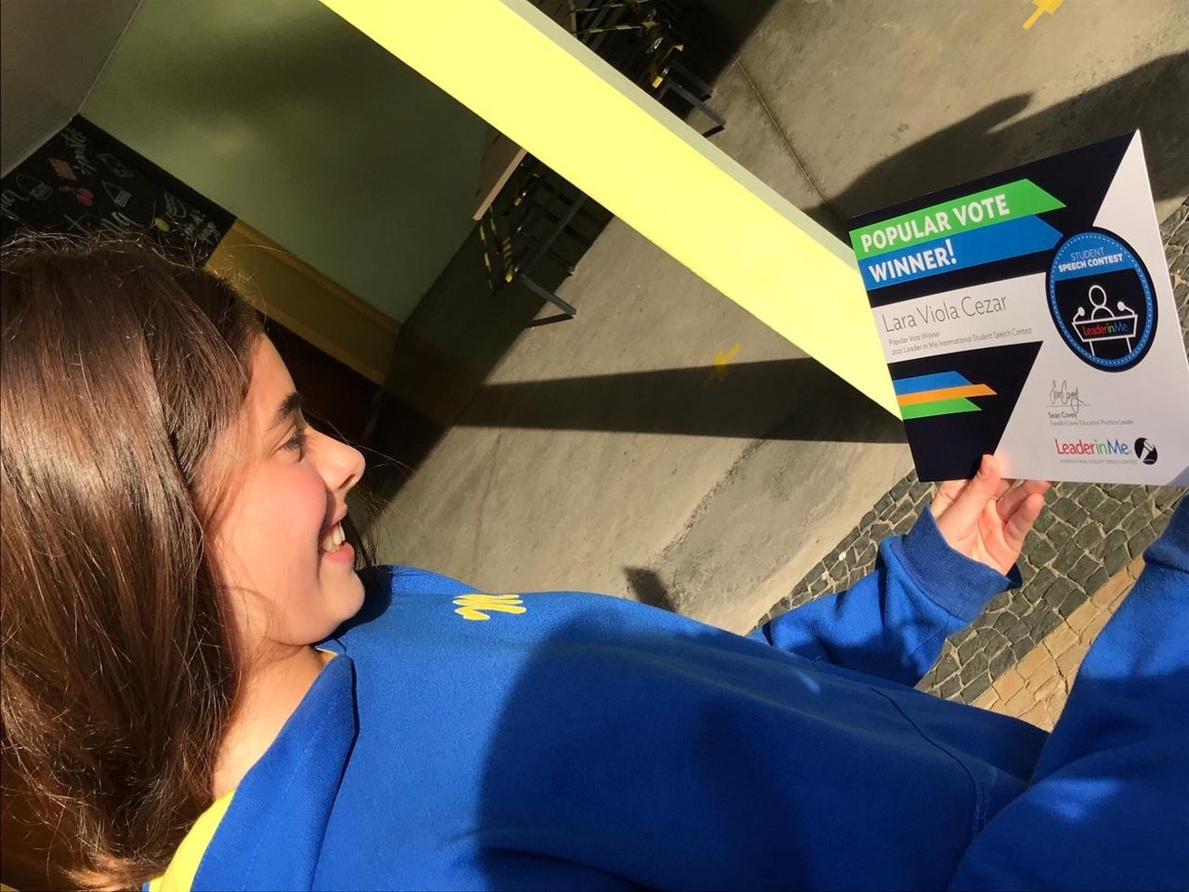 Em um post nas redes sociais, a escola onde Lara estuda publicou o momento em que ela recebeu o certificado de sua vitória. “Nossa querida aluna Lara Viola, vencedora do Concurso Internacional “Speech Contest 2021”, com sua iniciativa de propagar a leitura e o autoconhecimento às crianças. Parabéns Lara! Parabéns Professores de Inteligência Socioemocional! Com inteligência e afeto alçamos altos níveis de consciência e conhecimento. Isso é ensinar o caminho”, escreveram.