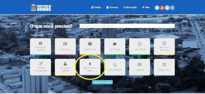 Acessando www.araras.sp.gov.br o link aparecerá disponível entre os principais serviços do munícipio.
