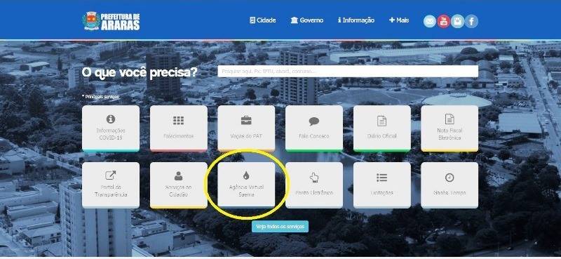 Agora é possível acessar a Agência Virtual do Saema (Serviço de Água e Esgoto do Município de Araras) pelo site da Prefeitura de Araras (www.araras.sp.gov.br). O espaço está disponível na página principal junto com os principais serviços do município.