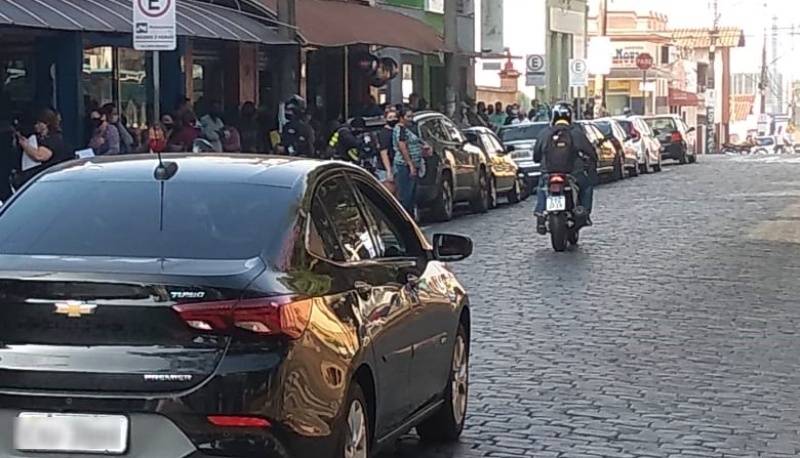 Vídeo gravado por moradora da cidade mostra longa fila em frente à agência do Centro nesta sexta-feira.