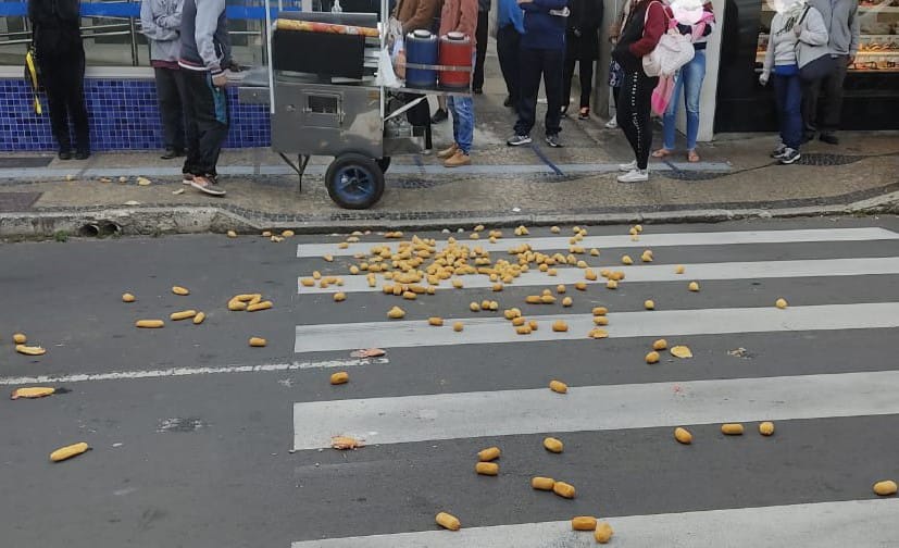 O homem não concordou com a fiscalização tendo desacatado os fiscais e atirado os salgados na rua e em direção a eles. Todas as partes foram conduzidas ao Plantão Policial. Os fiscais tomaram as devidas medidas administrativas.