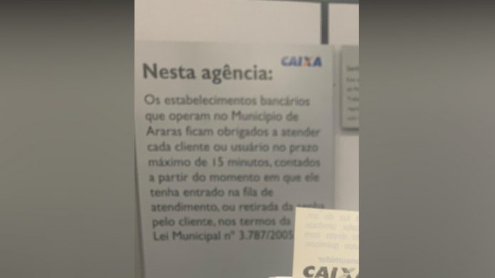 Apesar da lei, a realidade é bem diferente! É o que relata o empresário Leandro Paraluppi, que na tarde de terça-feira (7), em uma publicação nas redes sociais, ele fez o registro informando que ficou entre fila na rua até ser atendido, mais de 4 horas na Caixa Econômica Federal.