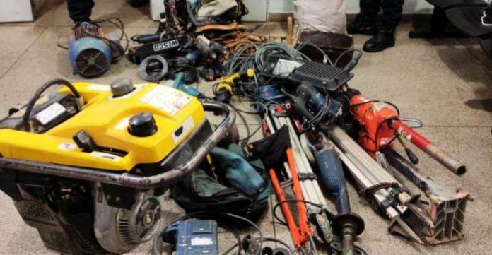 Durante averiguação, foram localizados um veículo Ford/Courier e dezenas de ferramentas e objetos.