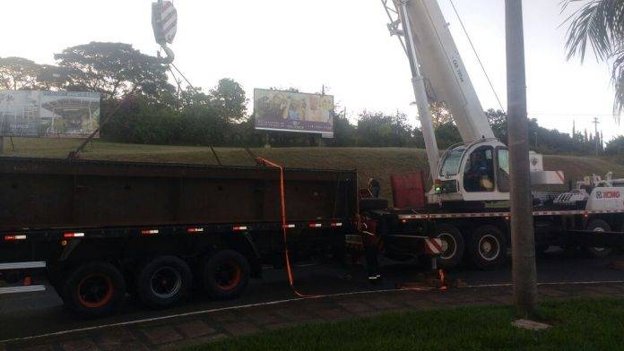 O local foi devidamente sinalizado, até a chegada de um guindaste que fez o transbordo da carga para uma outra carreta, com isso liberando o trânsito por completo.