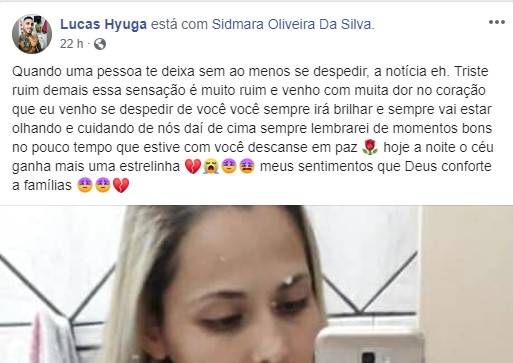 No perfil do suspeito de cometer o crime em uma rede social, há uma postagem de “despedida” para a vítima. No texto, que está acompanhado de uma foto dela, ele diz que não teve a chance de se despedir. A publicação recebeu centenas de comentários, alguns acusando o suspeito de tentar enganar as autoridades. A Polícia Civil confirmou que ele foi o autor da publicação e que disse que não imaginava que seria descoberto.