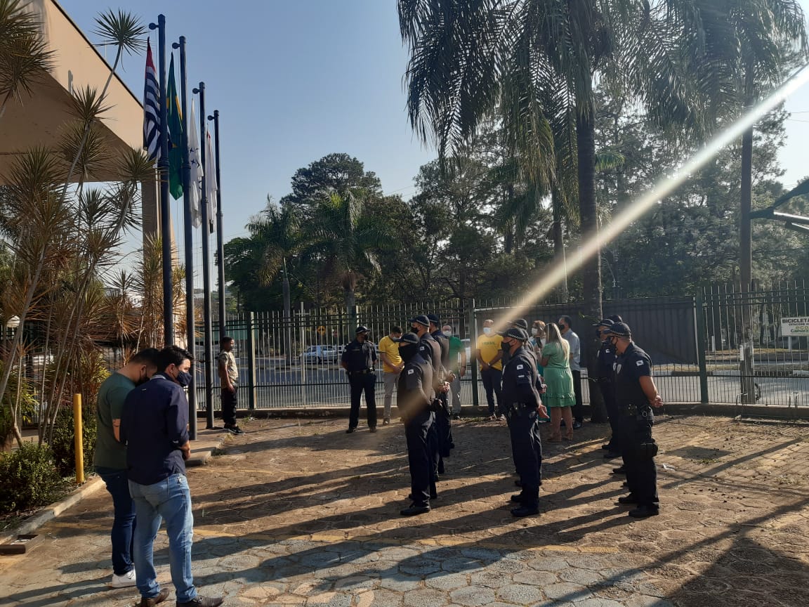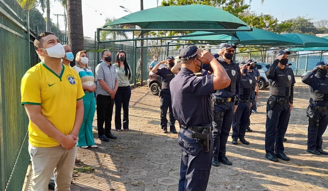 O evento patriótico, foi realizado com número restrito de pessoas e fechado ao público, por conta das restrições da pandemia e contou com a participação dos vereadores e integrantes da Guarda Civil Municipal, em demonstração de respeito e amor à pátria.