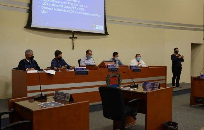 Entre os assuntos da pauta, foram informadas as metas e prioridades para os gastos municipais para o ano seguinte. A direção dos trabalhos foi pelos senhores, Wilson Freitas Rabelo – Secretário Municipal da Fazenda, Felipe Dezotti Beloto – Secretário Municipal de Planejamento, Alexandre Faggion Castagna – Presidente do SAEMA, Jonas Alves Araújo Filho – Presidente da TCA, e o Sr. Aparecido Orpinelli Junior – Contador da Araprev. Durante o decorrer das atividades, registramos também a presença dos parlamentares, Rodrigo Soares, presidente da Casa, Marcelo de Oliveira e Regina Corrochel.