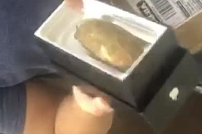 Ele encomendou um aparelho para dar de presente à esposa; ao abrir a embalagem, caixa estava violada e tinha um tubérculo.