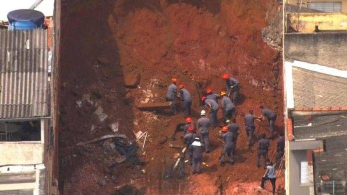 Há ao menos uma vítima que, segundo os bombeiros, está soterrada e aguarda por resgate.