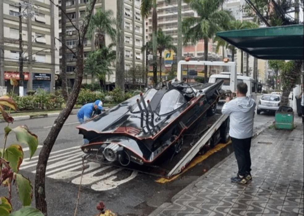 Uma réplica do Batmóvel, o famoso veículo usado pelo herói dos quadrinhos Batman, foi flagrada sendo guinchada em Santos, no litoral de São Paulo. A imagem que mostra o veículo sendo retirado da frente de um ponto de ônibus na avenida Ana Costa, uma das mais movimentadas da cidade, no bairro do Gonzaga, no último domingo (7), viralizou.