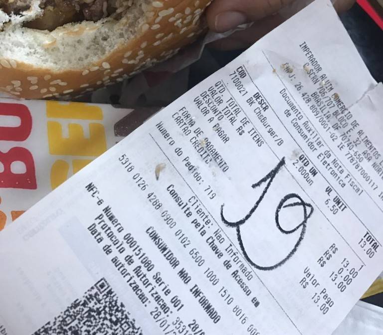 “Oi, aqui somos nós do Burger King Brasil. Pois é. Nós obviamente vimos o filme de um caso que está circulando na internet. E estamos averiguando. Nós estamos no início do processo de entender o que pode ter ocorrido, mas isso é o que nós já sabemos no momento: