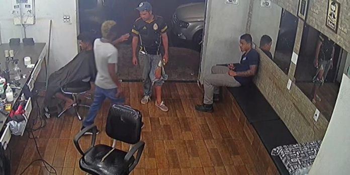 Um ladrão se deu mal após tentar roubar um salão de cabeleiro situado na área Central de Ribeirão Preto (SP). Pelas imagens de câmeras de segurança, é possível ver o momento que o larápio chega no local e rende a vítima que cortava o cabelo de um cliente.