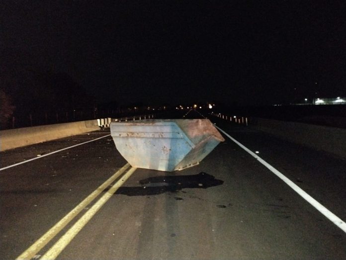A ocorrência foi registrada pela Polícia Militar Rodoviária e apresentada no plantão da Central de Polícia Judiciária. O dono da caçamba até o fechamento desta edição não havia sido identificado. O caso está sendo investigado.