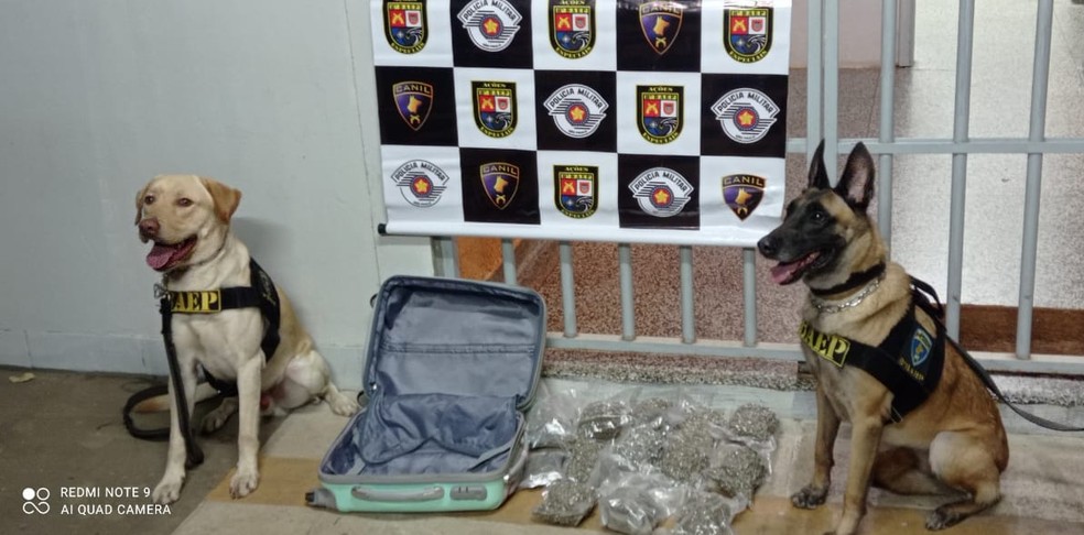Conforme a equipe do Batalhão de Ações Especiais de Polícia (Baep), o coletivo tinha como linha Campo Grande (MS) a Campinas (SP). Com apoio do Canil, os cães Maila e Tobias farejaram 13 embalagens da droga skank em uma mala de viagem, que pesaram 3,2 quilos.