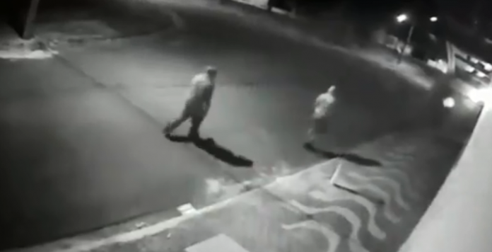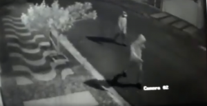 A família estava dormindo no momento da ação criminosa. Em uma das imagens, podemos observar a tranquilidade dos marginais andando pelas ruas.