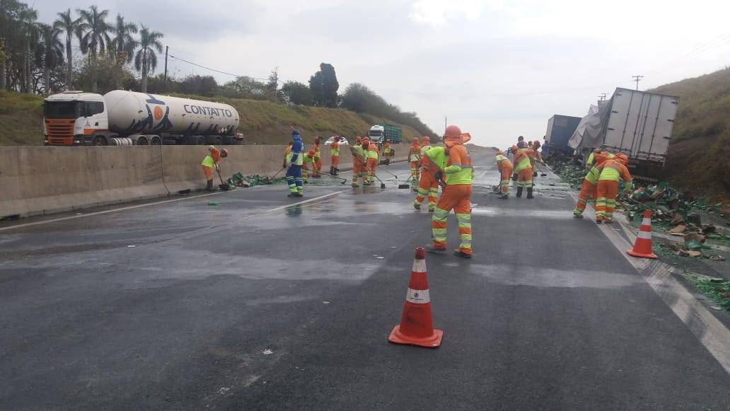 Acidente ocorreu no km 138; carga ficou espalhada na pista e gerou um pequeno congestionamento de 3 quilômetros.
