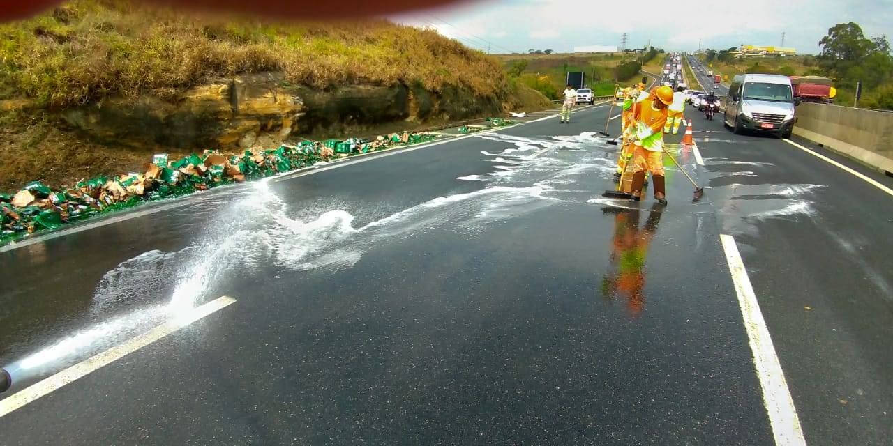 Um caminhão de cerveja tombou na manhã desta segunda-feira (02, na Rodovia Anhanguera (SP-330) na cidade de Limeira (SP). Conforme informações da Polícia Militar Rodoviária, o acidente não deixou feridos e gerou um congestionamento de 3 quilômetros.