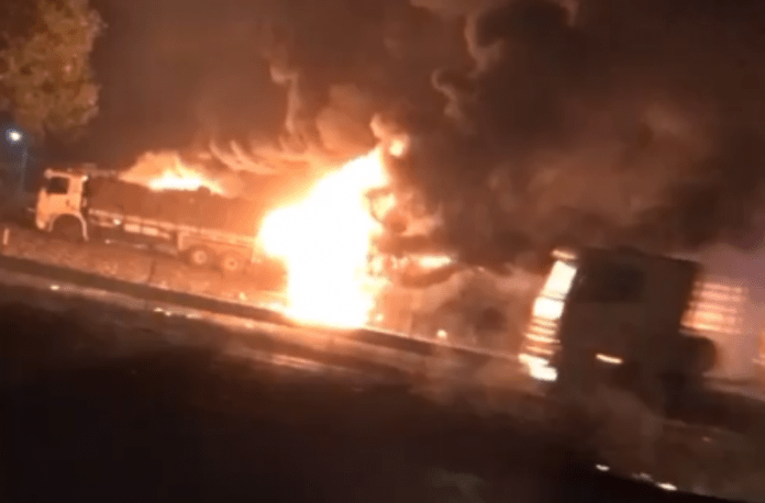 Equipes do Corpo de Bombeiros estão no posto Confiante. Moradores relataram que um caminhão carregado com produtos químicos teria explodido no local, mas a causa ainda não foi confirmada pelas autoridades.