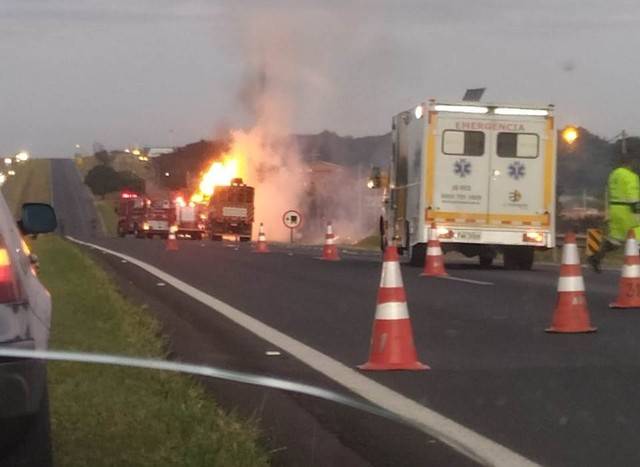 Um caminhão pegou fogo e interditou a Rodovia Washington Luís (SP-310), em Ibaté, no final da tarde deste sábado (22). Ninguém ficou ferido.