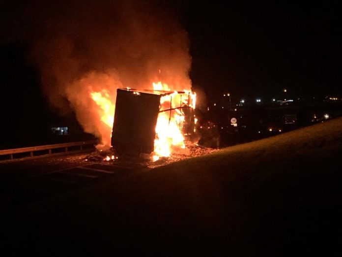 Uma carreta sider com matéria-prima para produção de garrafas pet, pegou fogo (vídeo abaixo) no km-175, e interditou a Rodovia Washington Luís (SP-310), em Rio Claro (SP), na madrugada deste domingo (03). Ninguém ficou ferido.