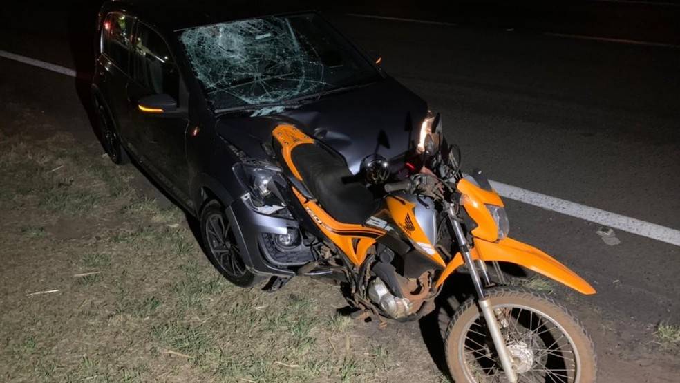 No momento da colisão, a moto modelo Honda NXR 160 ficou acoplada na frente do carro, modelo Volkswagen UP Track. Algumas pessoas que estavam no posto de combustíveis próximo à rodovia ouviram o barulho da batida.