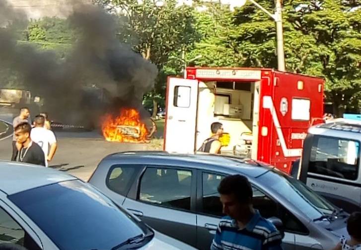 Um carro pegou fogo na Avenida Eugênia Biancalana Duarte, no Jardim Primavera, em Sumaré (SP), por volta das 16h30 deste sábado.