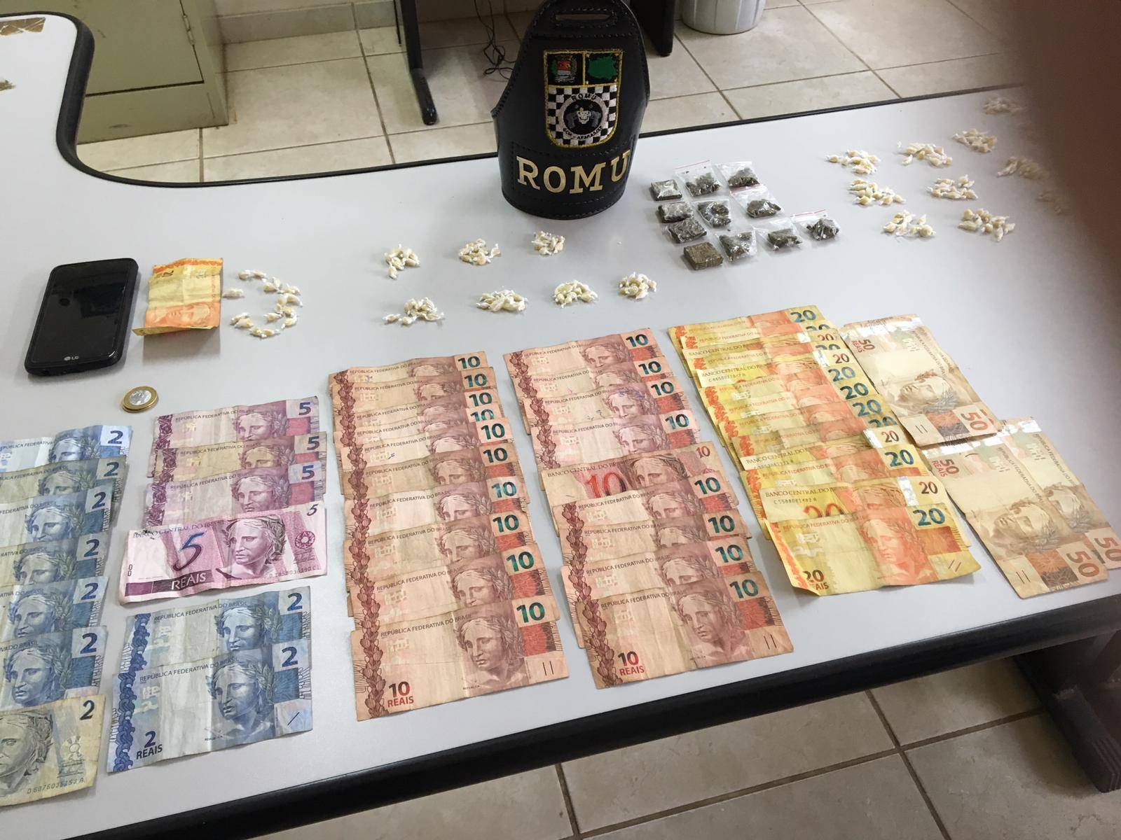 Com eles foram apreendidos, pinos de cocaína, pedras de crack, porções de maconha e dinheiro.