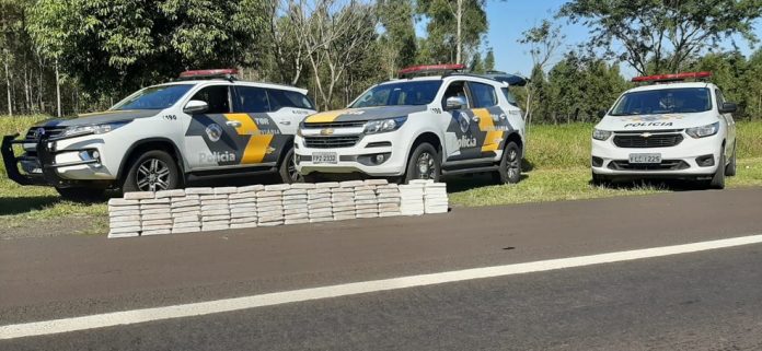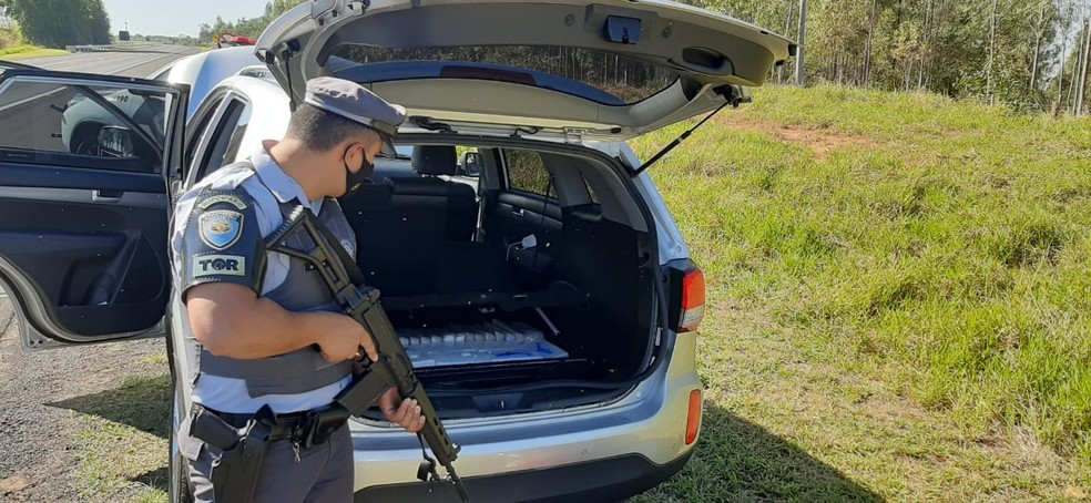 A droga estava no fundo falso do porta-malas de um carro que foi abordado durante fiscalização de rotina. Um homem e uma mulher, grávida de 7 meses, estavam no veículo com duas crianças, de 7 e 9 anos.