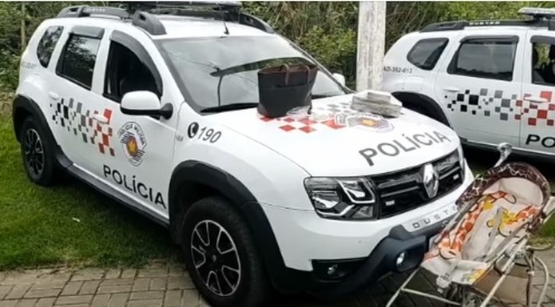 Imediatamente foi realizado o patrulhamento com vistas às características informadas, a equipe visualizou uma mulher com uma criança em um carrinho de bebê com uma bolsa feminina, se aproximando de um indivíduo.