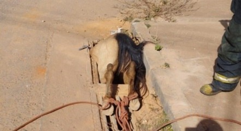 Um cavalo foi resgatado após cair em um bueiro de cerca de 1 metro e meio em Montes Claros (MG), cidade a 422 km de Belo Horizonte, no último domingo (10). O Corpo de Bombeiros resgatou o animal, que ficou apenas com as patas traseiras para fora do buraco.