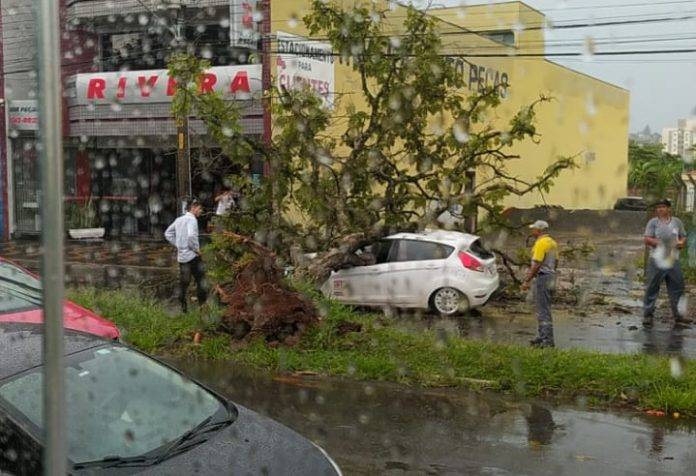 Uma forte chuva atingiu Araras (SP), no início da tarde desta quarta-feira (17), causando pontos de alagamentos e queda de árvores, na Avenida Loreto, que foi sobre um carro (assista abaixo), e ao menos duas no bairro Belvedere, e demais localidades. Não há informações sobre feridos.