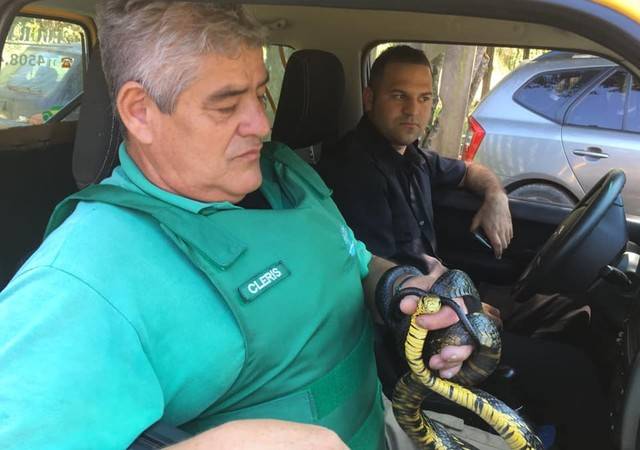 A serpente, que media pouco mais de 2 metros, foi resgatada no final de semana e levada ao Parque Estadual Serra do Mar – Núcleo Itariru. “Veio uma equipe e ela foi capturada, sã e salva. E todos ficaram felizes para sempre, inclusive eu, que morro de medo de cobra”.