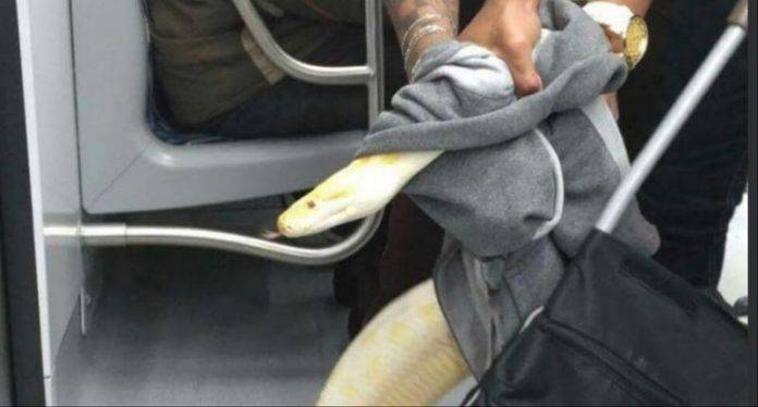 O grupo também tentou enrolar a cobra em um moletom para escondê-la. Sem sucesso, no entanto, circularam com o animal à vista pelas estaçōes.