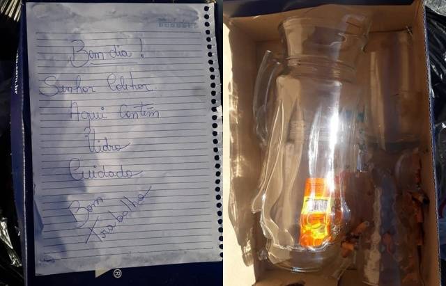 Um fato chamou a atenção dos coletores de lixo na manhã desta sexta-feira (31) na região norte da cidade de Araras (SP). De acordo com um vídeo postado por Fernando Santos, que é servidor público municipal, e trabalha nesse tipo de serviço, um morador do bairro Parque das Árvores, deixou um alerta escrito em uma caixa, sobre o descarte de vidro feito por essa pessoa.