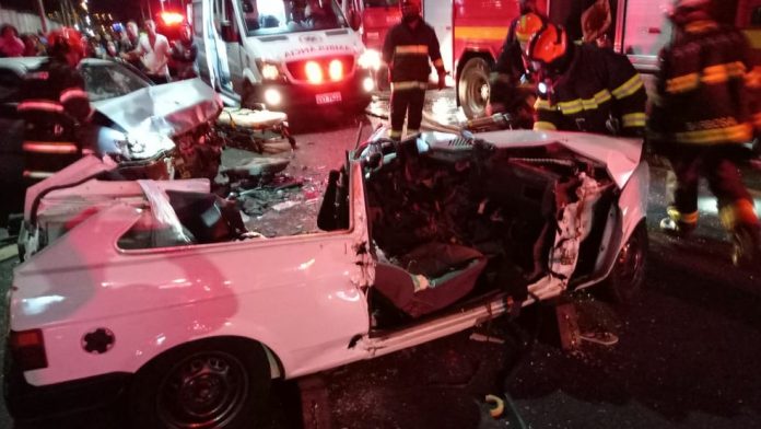 Uma colisão entre dois carros deixou oito pessoas feridas na noite de domingo (31), na Avenida Emílio Bosco, no bairro Matão, em Sumaré (SP). De acordo com a Polícia Militar, o motorista de um veículo modelo Volkswagen Gol entrou na contramão em alta velocidade e bateu de frente com um Fiat Palio, que vinha no sentido oposto.