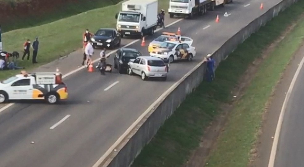 De acordo com a Renovias, concessionária que administra o trecho, o acidente aconteceu no km 174, no sentido Espírito Santo do Pinhal (SP), e bloqueou as duas faixas da via.